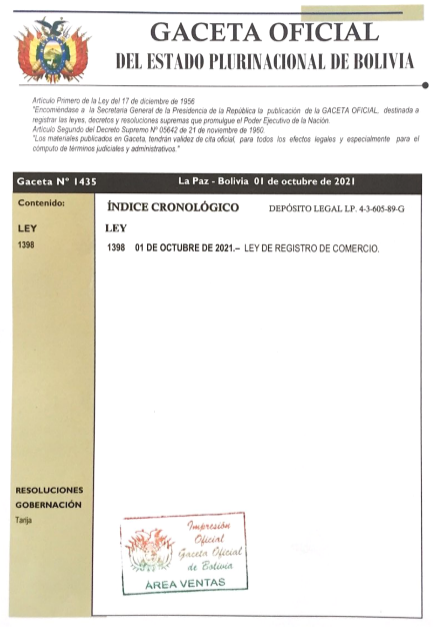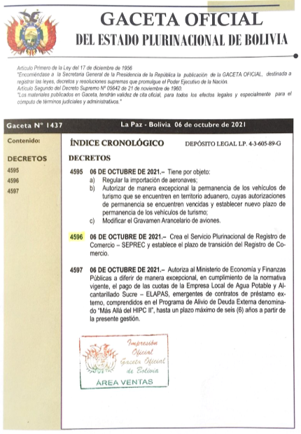Creación del Servicio Plurinacional de Registro de Comercio  SEPREC